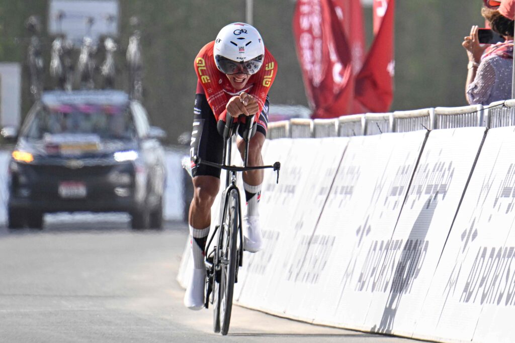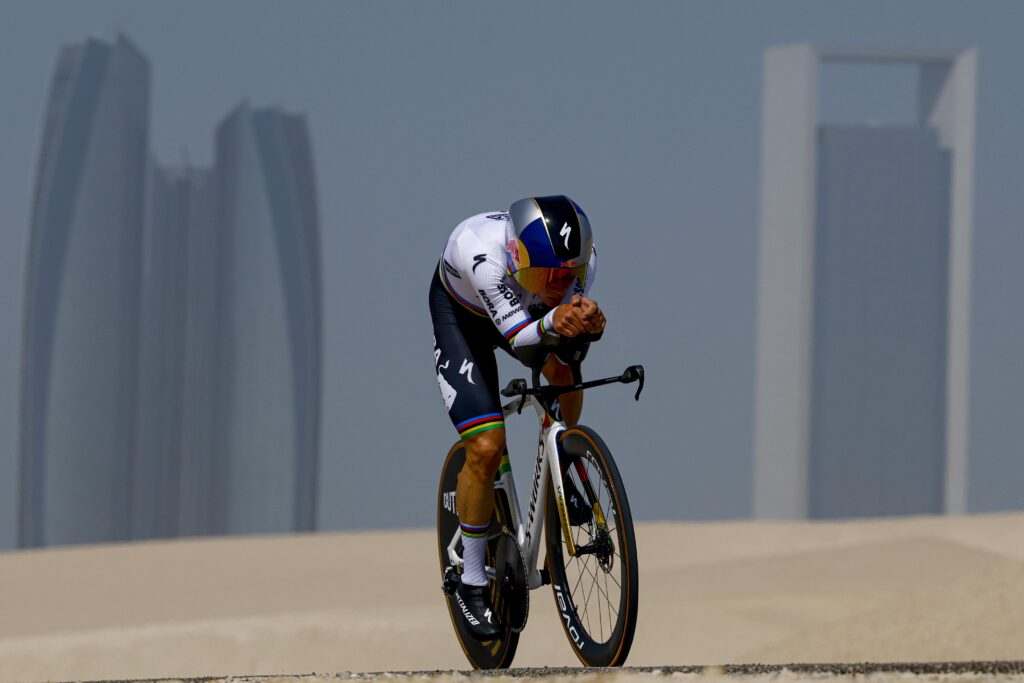 La deuxième étape du Tour des Émirats arabes unis (2.UWT) proposait un contre-la-montre tout plat de 12,2 km à Hudayriyat Island. Un parcours idéal pour Remco Evenepoel (Red Bull – BORA – hansgrohe), champion du monde de la discipline. Le Belge a fait honneur à son statut en remportant cette étape de manière écrasante.