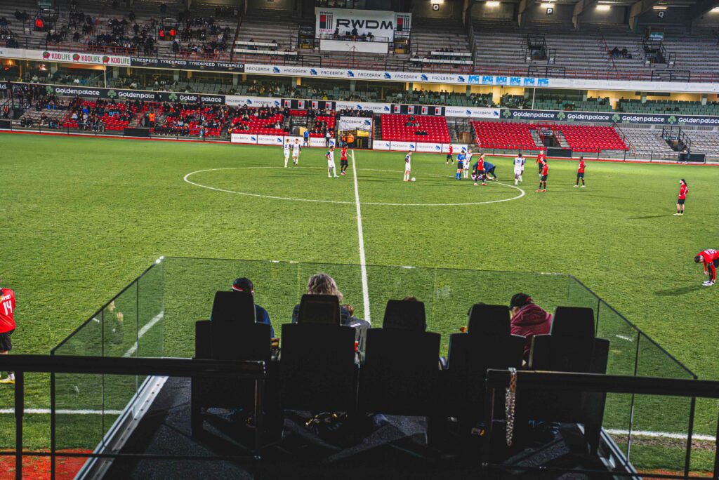 Vivez le match comme jamais auparavant ! Le RWDM Brussels et Golden Palace News vous offrent une expérience inédite : les Golden Seats. Ces cinq sièges dorés, situés au cœur du terrain entre les bancs de touche, vous plongent au plus près de l’action.