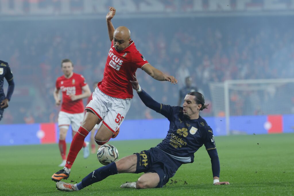 LIEGE, BELGIUM – FEBRUARY 27 : Nkada Thimote forward of Standard de Liege in action during the Jupiler Pro League match between Standard de Liege and RAAL La Louviere on February 27, 2026 in Liege, Belgium, 27-02-26 ( Photo by Xavier Piron / Photonews